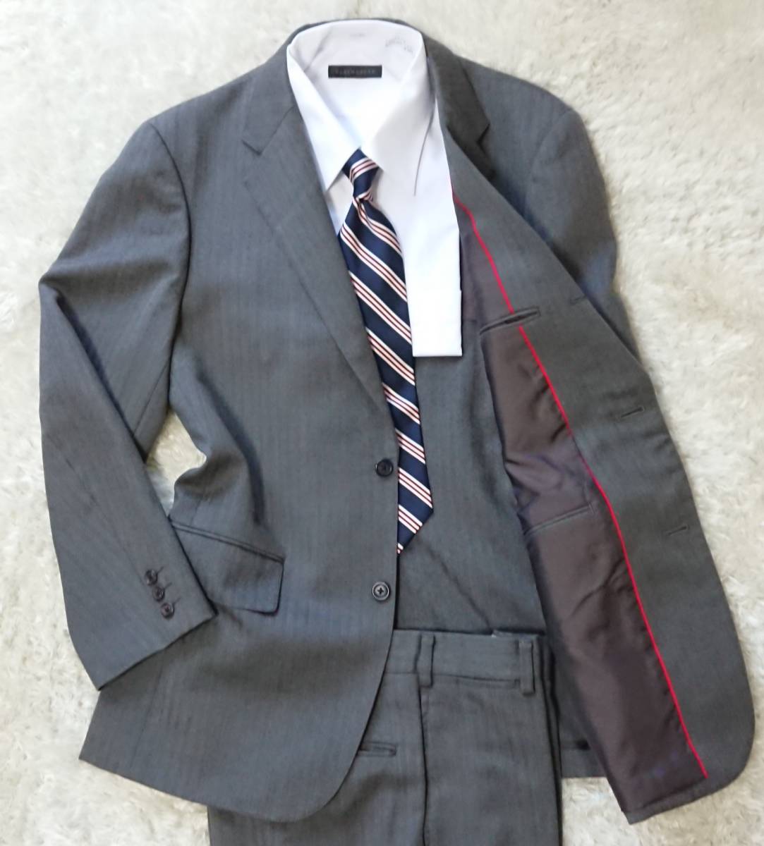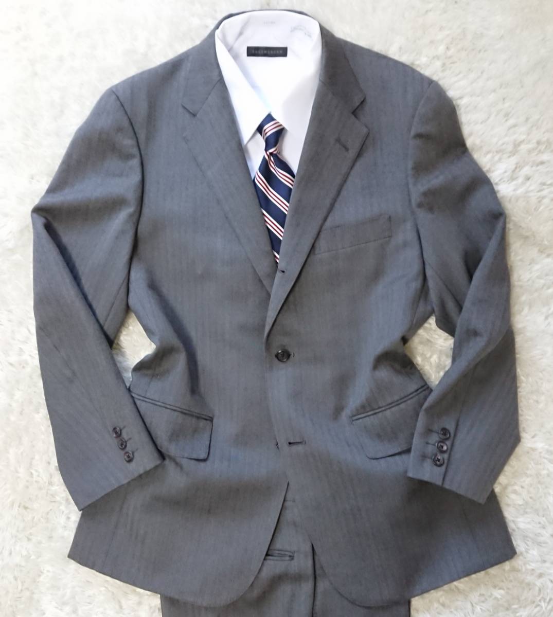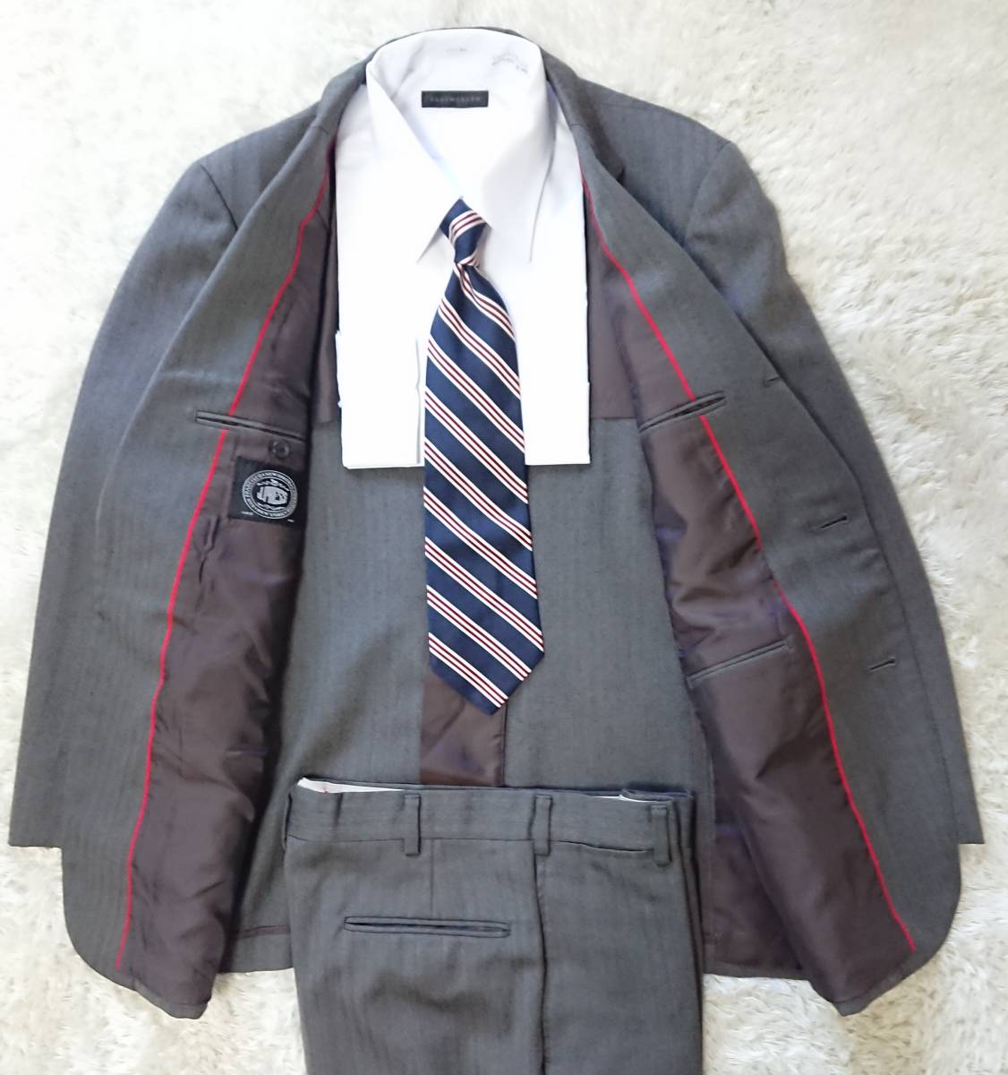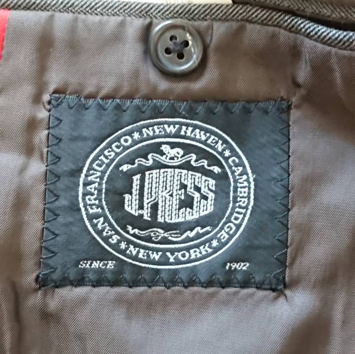 ジェイプレス J.PRESS スーツセットアップ テーラードジャケット ヘリンボーン グレー XL ウール 段返り3つB 背抜き
