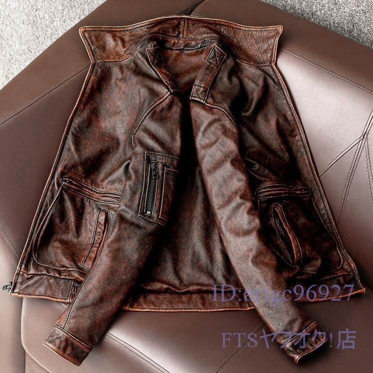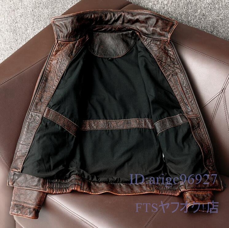 V305☆新品レザージャケット A2フライトジャケット 上品 ユーズド加工 本革 牛革 高級 ライダースジャケット 革ジャン M~4XL