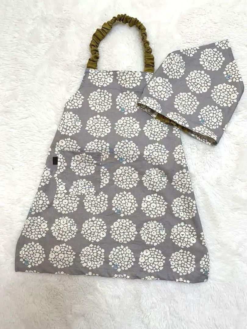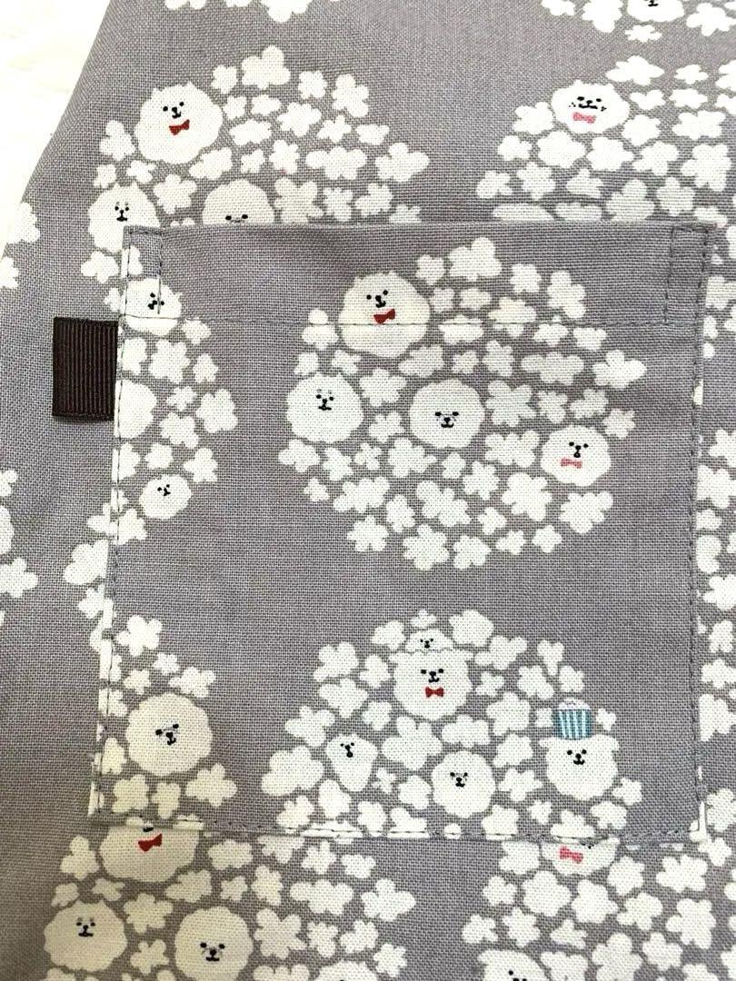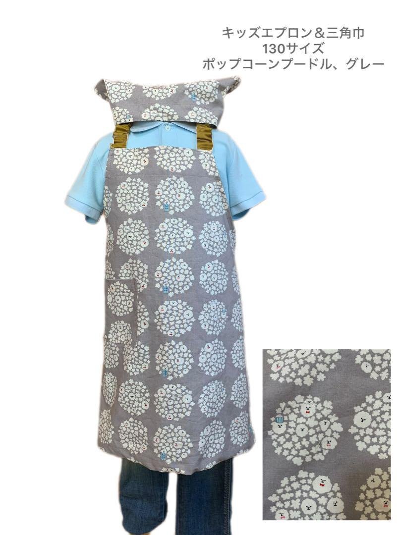 キッズエプロン&三角巾・ポップコーンプードル(グレー)130サイズ 男女兼用