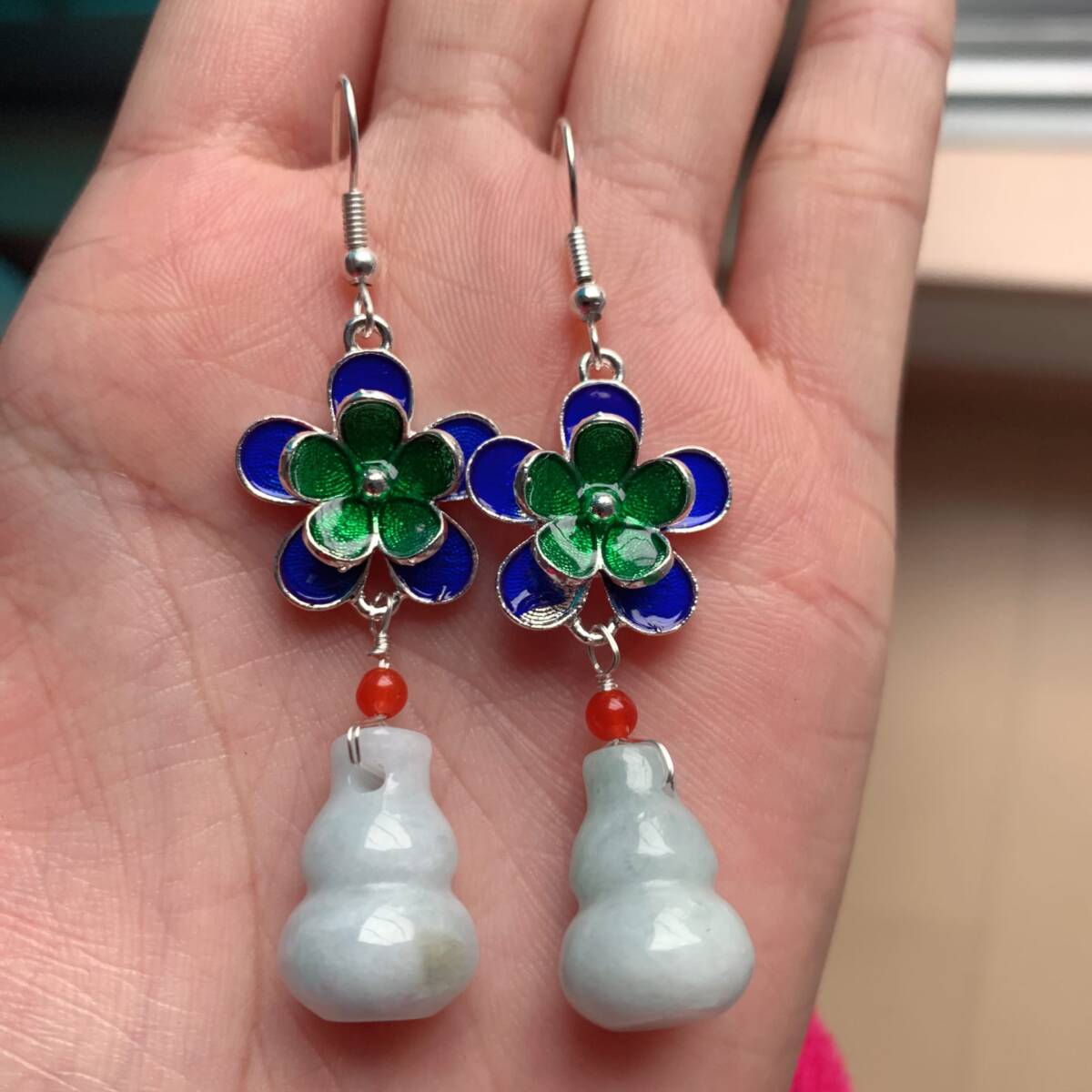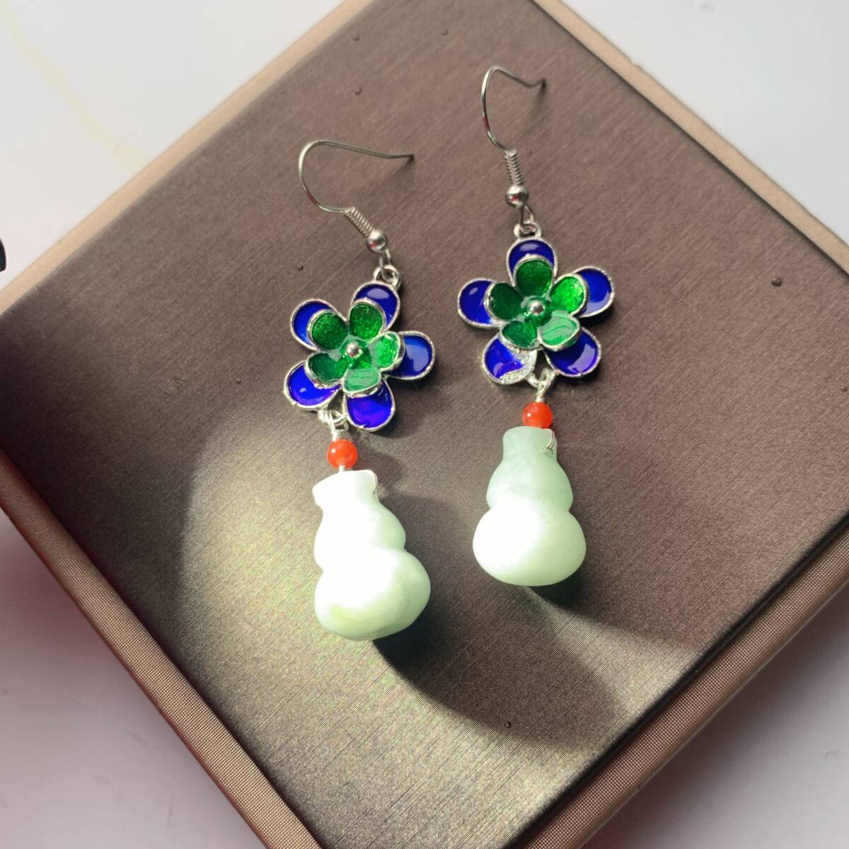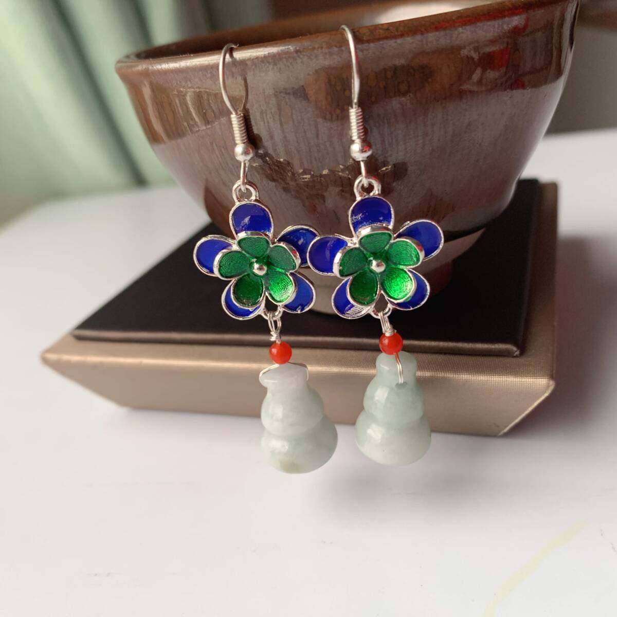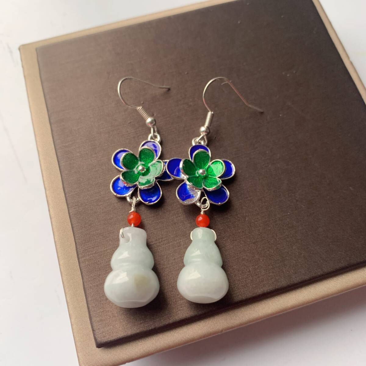 ◇ジェイド(本翡翠)+赤瑪瑙◇七宝焼◇ヒスイ◇ピアス◇天然石◇パワーストーン◇巾着袋付き◇プレゼントにも028R21908