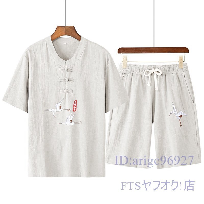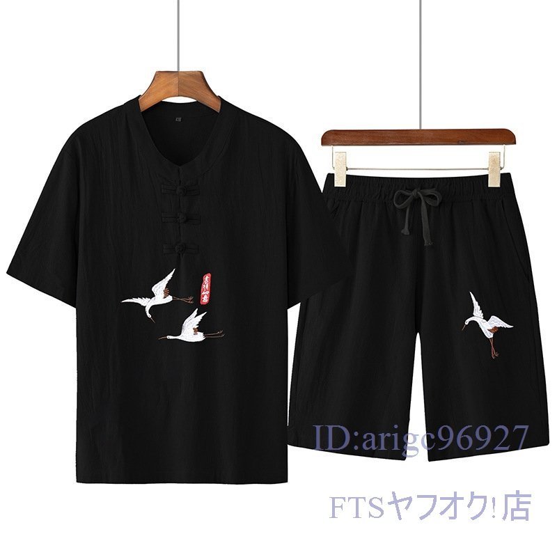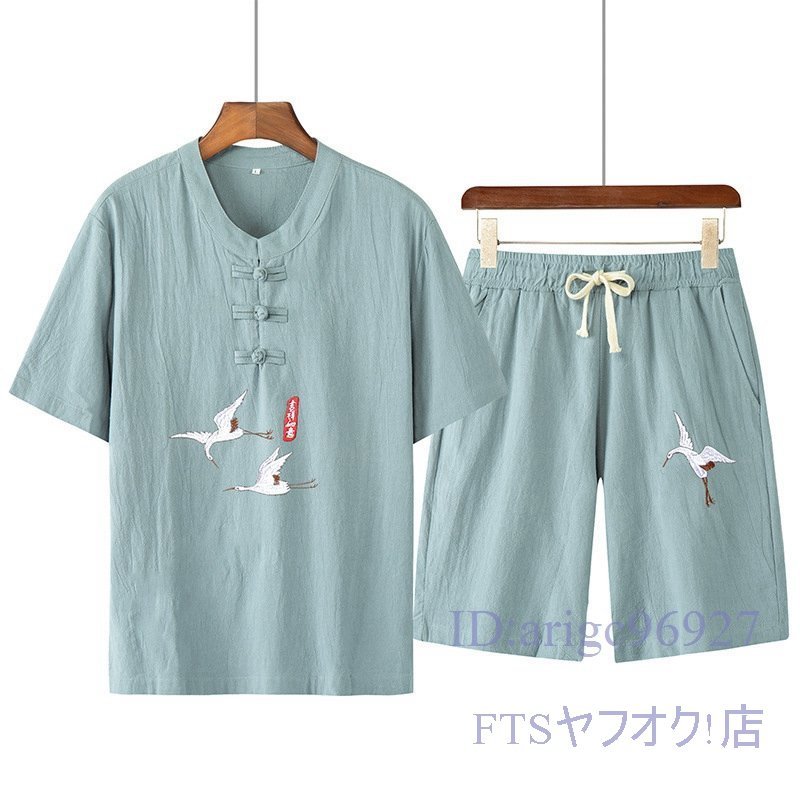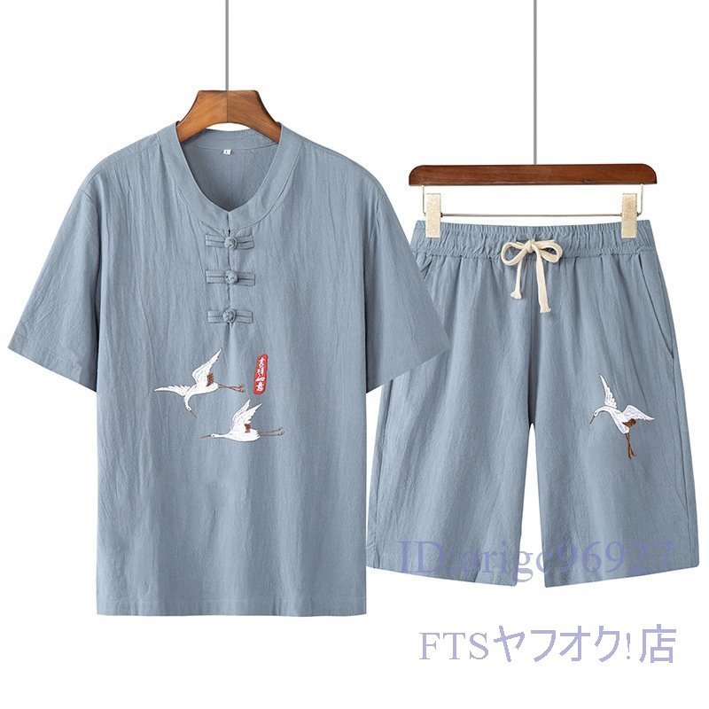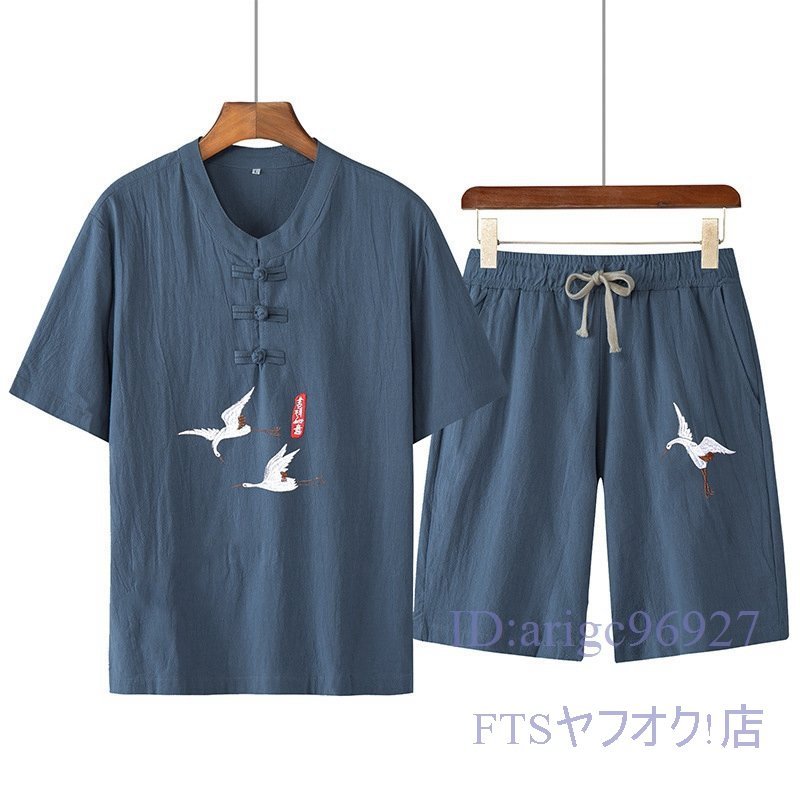 T251☆新品メンズジャージセットアップ綿麻上下セットハーフパンツショートパンツ部屋着カジュアルゆったり大きいサイズ紺色M~5XL