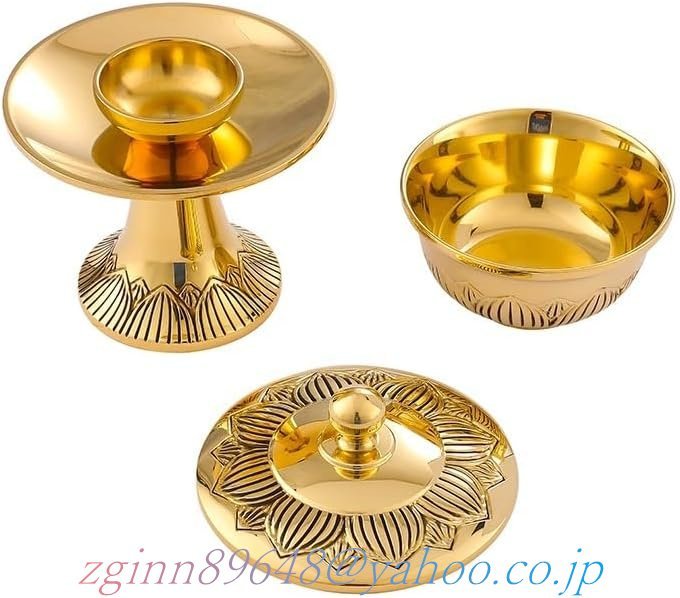 仏様にお茶やお水をお供えする仏具で、台・湯呑・蓋がセットになっている茶湯器。