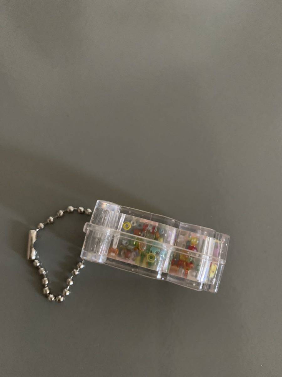 プーさんのキーホルダーです。中にビーズやスパンコールが入っていて、シャラシャラと動きます。取り出すことはできません。