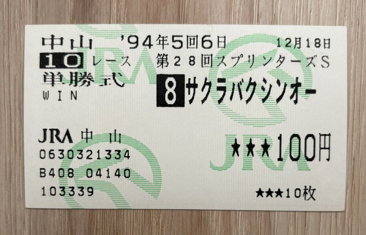 サクラバクシンオー 1994年スプリンターズS 現地単勝的中馬券