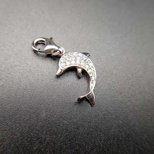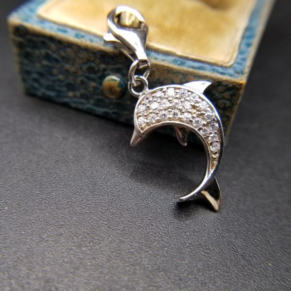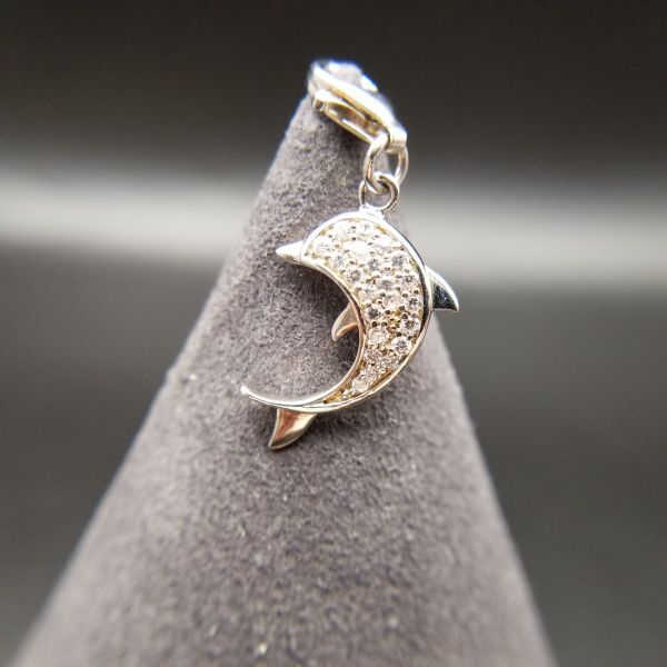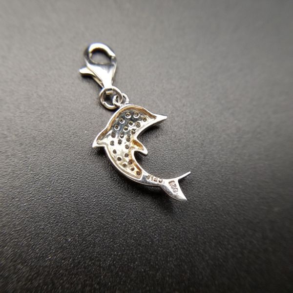 イルカ 小ぶり キュービックジルコニア 925 シルバー ヴィンテージ チャーム ペンダントヘッド Dolphin キュート動物モチーフ SNL37