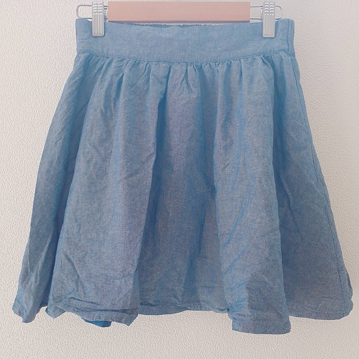 | ネイビーカラーのフレアスカートになります。シンプルなデザインで合わせやすいアイテムとなっております。 |