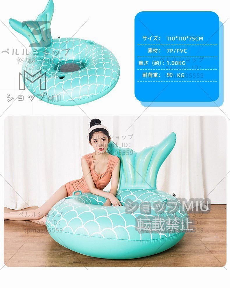 夏に最高!大型 エアー 浮き輪 遊具 大人用 浮き輪 水上ハンモック 水遊び 親子遊び ビニール 浮具プール 海水浴 マーメイド ブルー