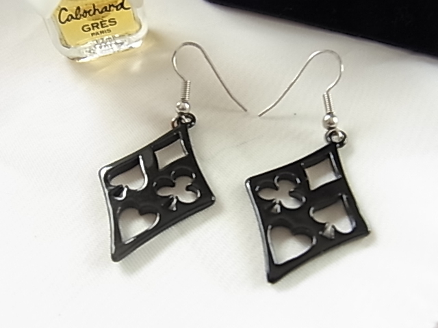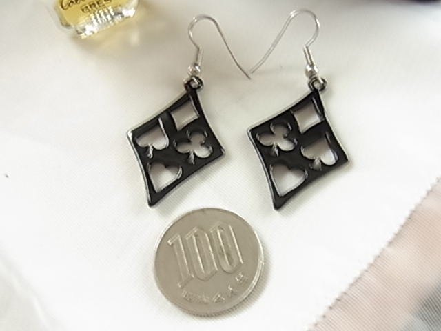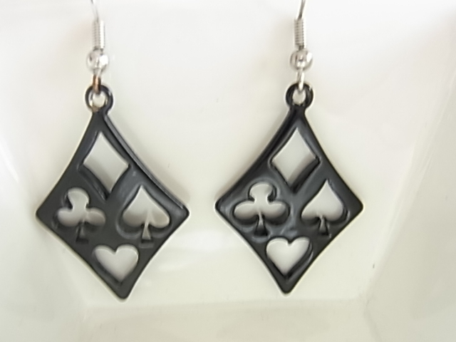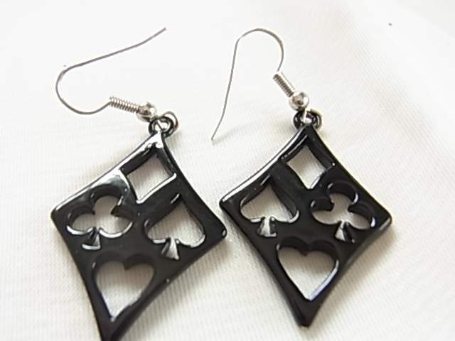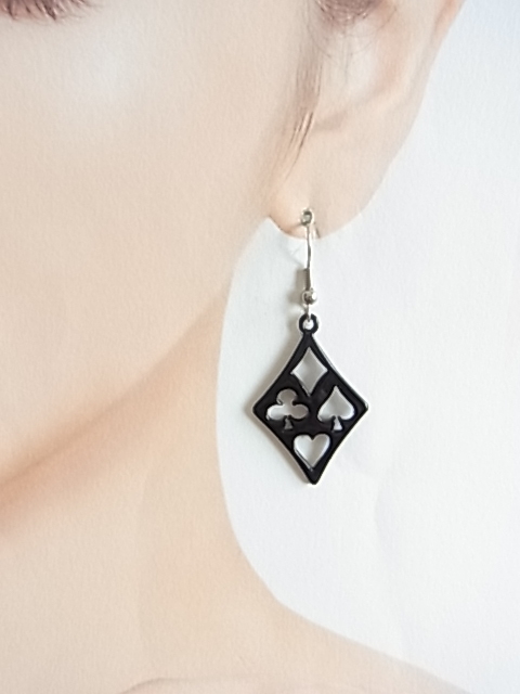 ビンテージ/ヴィンテージ ブラックカラー 黒色が綺麗 トランプ柄くり抜き ハート スペード クローバー ダイヤ お洒落なピアス◆