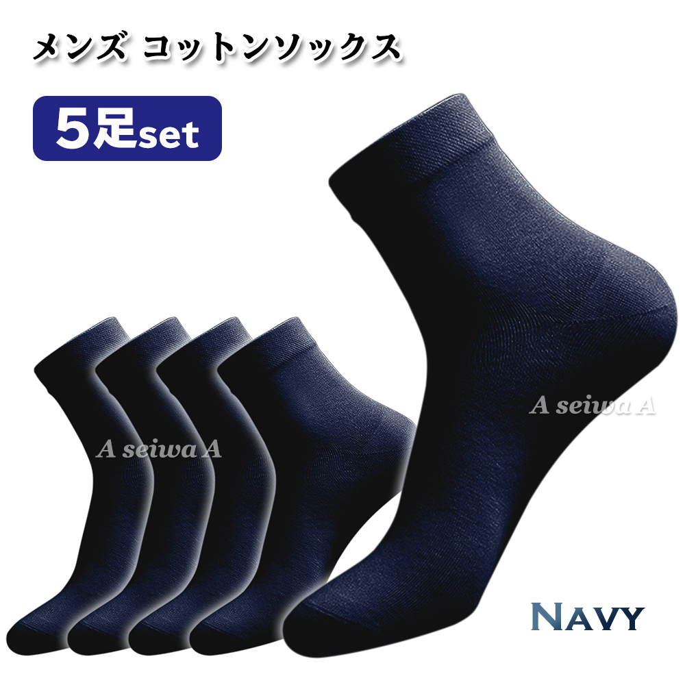 【N-3】靴下 メンズコットン 5足セット(ネイビー)