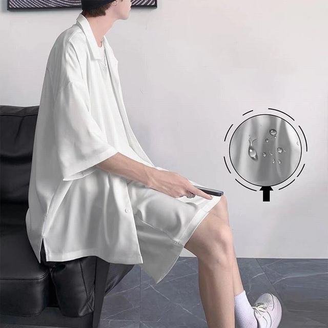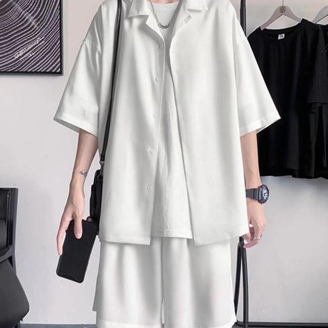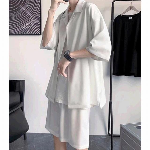 接触冷感 父の日 ジャージ 半袖 上下セット メンズ シャツ ショートパンツ カジュアル ゆったり 薄手 ホワイト M