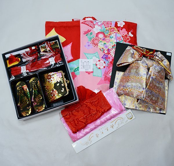 項目 | 七歳七五三祝着フルセット ・着物 ・長襦袢 ・結び帯 ・帯揚げ ・しごき ・帯締め ・伊達衿(縫付済) ・箱せこ ・草履 ・バッグ ・扇子 ・びら ・お守り |