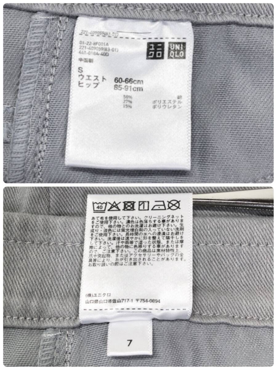 Y0888 UNIQLO ユニクロ レディース ボトムス カジュアルパンツ ロング丈 スキニー ストレッチ Sサイズ グレー 灰 無地 綿素材含 シンプル