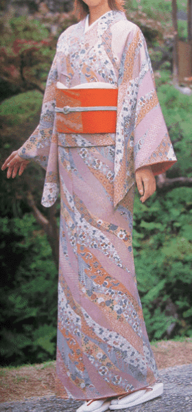 正絹(絹100%)の国産糸のしっかりとした白生地に小紋を染めた品物です。
