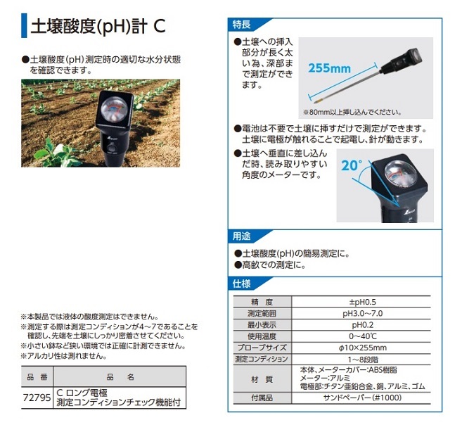 シンワ測定製の土壌酸度(pH)計Cの72795です。