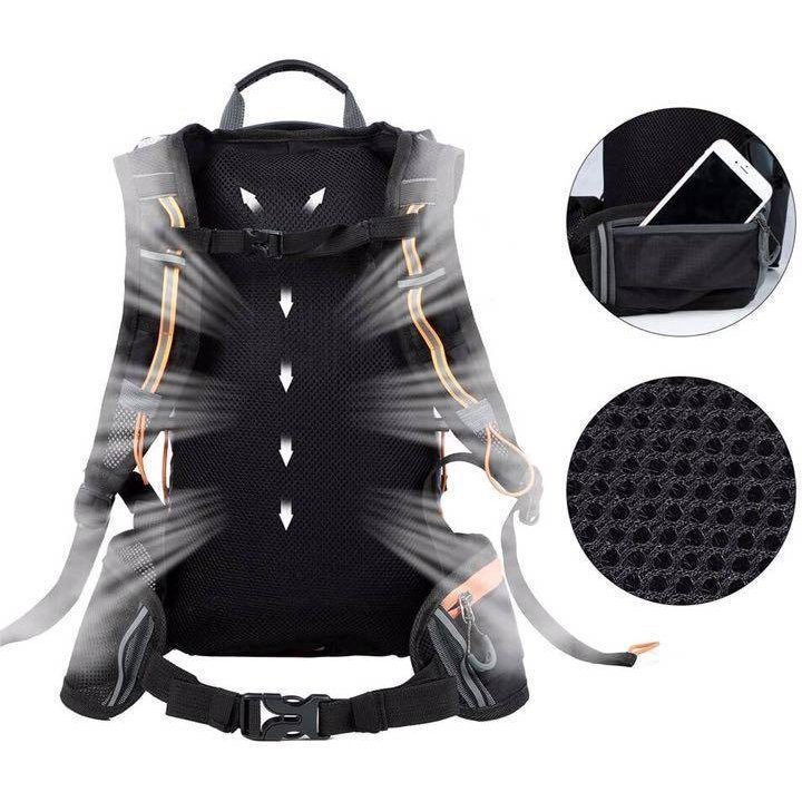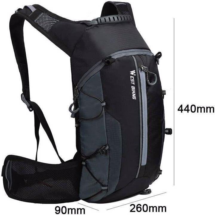 "サイズ:約440 × 250 × 90mm。 容量:約10L。 重量:約280g。 注:ウォーターバッグは別途で購入する必要があります。 【通気性抜群】 背面多層式ハチの巣状デザインは背中との接触面積を小さて、調節可能な胸骨ストラップ、ショルダーストラップふがあって、空気交換を促して素早く背中の熱いを放出できます。サイクリングはさっぱりして、ランニングを楽しめます。運動中にご背中も呼吸できます。