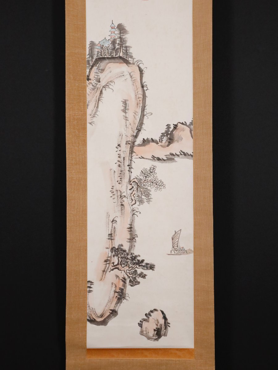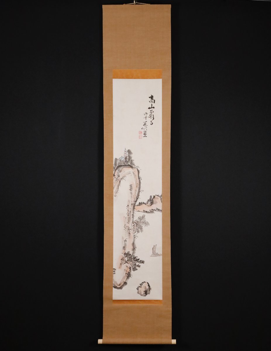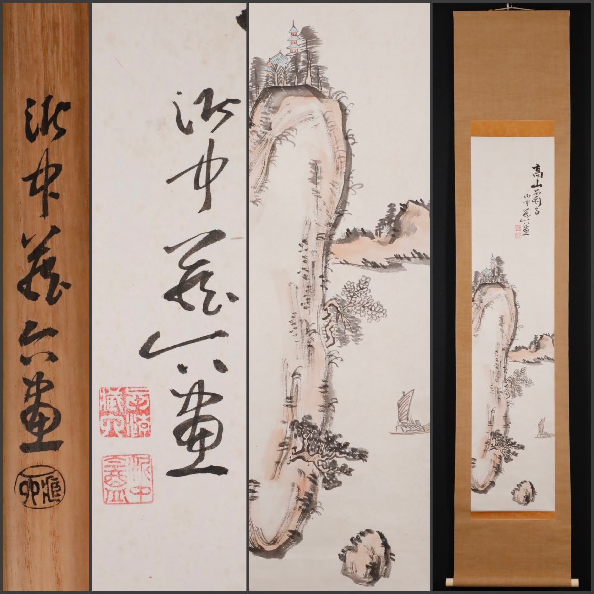 【模写】吉】10325 二代目 真清水蔵六 山水図 共箱 泥中庵 陶工 茶掛け 茶道具 中国画 掛軸 掛け軸 骨董品