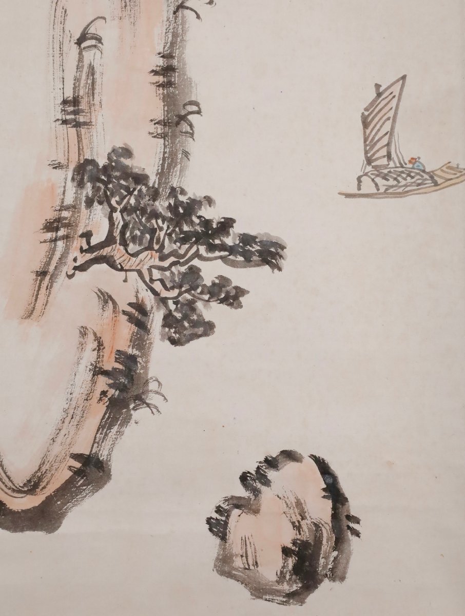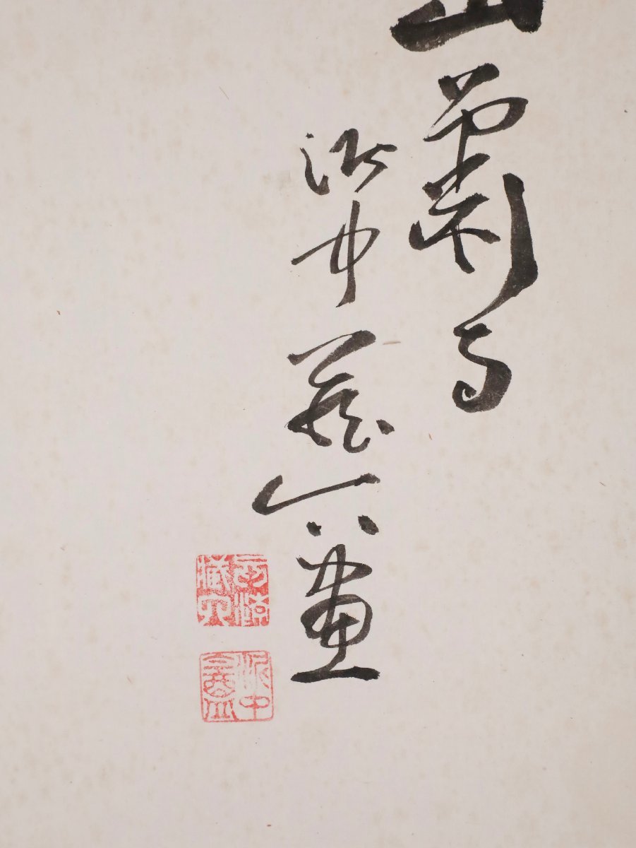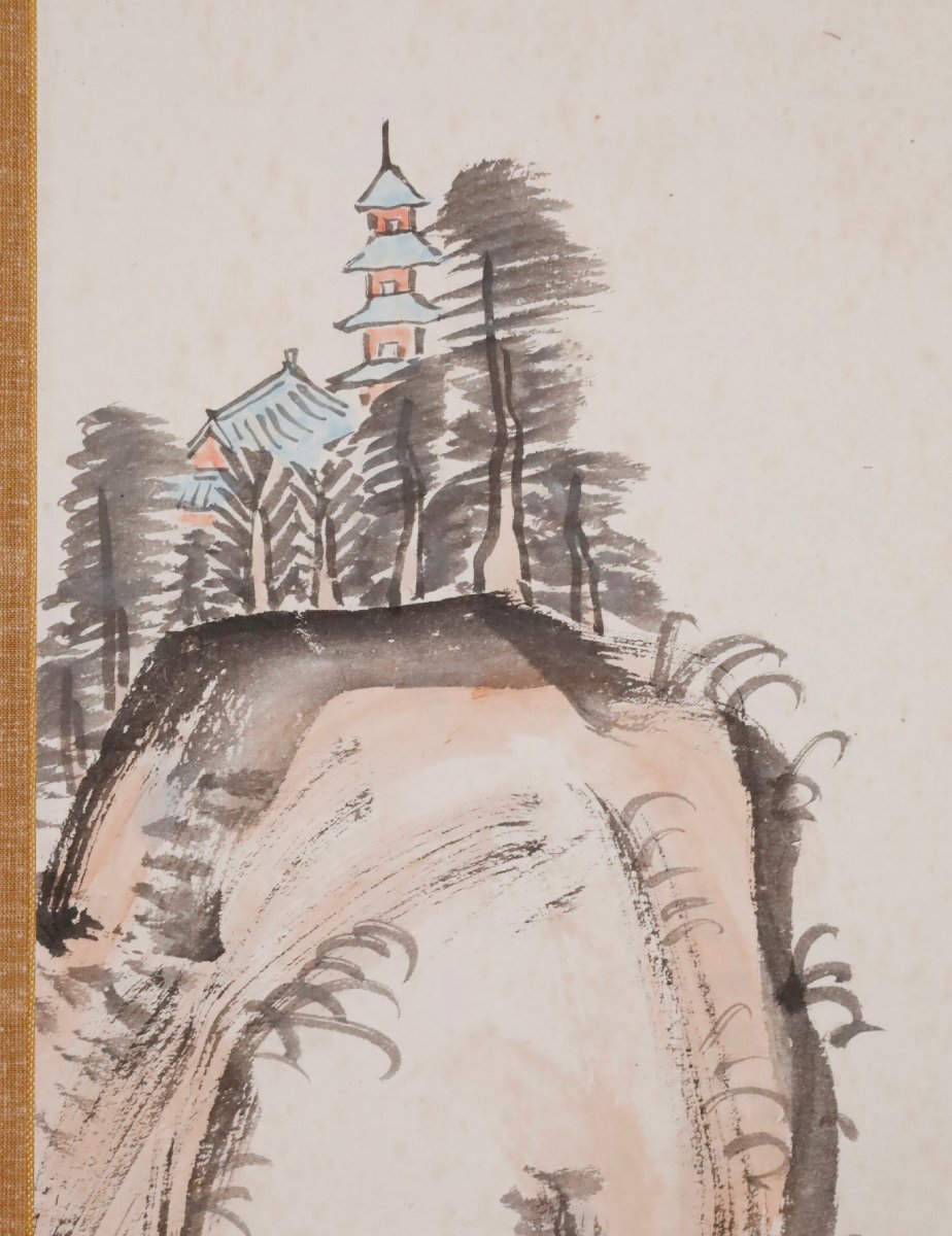 【模写】吉】10325 二代目 真清水蔵六 山水図 共箱 泥中庵 陶工 茶掛け 茶道具 中国画 掛軸 掛け軸 骨董品