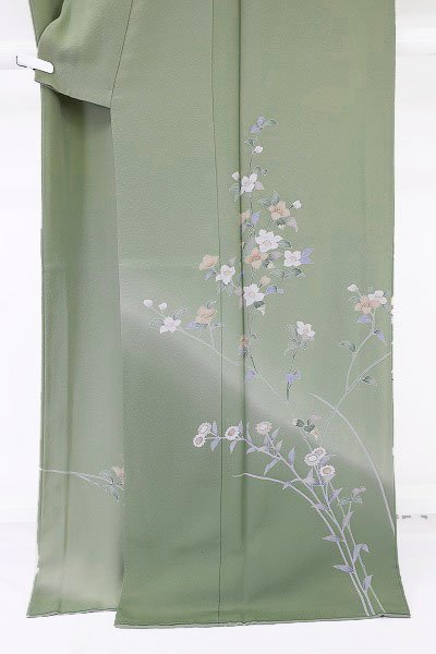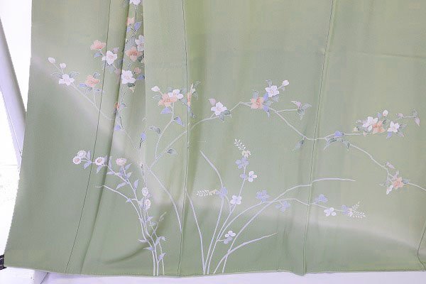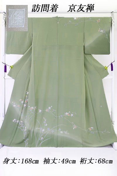 【送料無料】美品 訪問着 京友禅 枝椿 枝菊 若芽色 トールサイズ ゆったりサイズ 身丈168cm 作家物 入学式 卒業式 お洒落 上品 正絹 m-5736 |