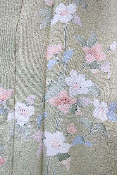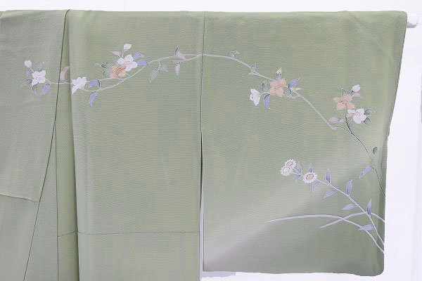 〔着物の色〕 若芽色地 〔八掛の色〕 共生地 〔着物の素材〕 正絹 |