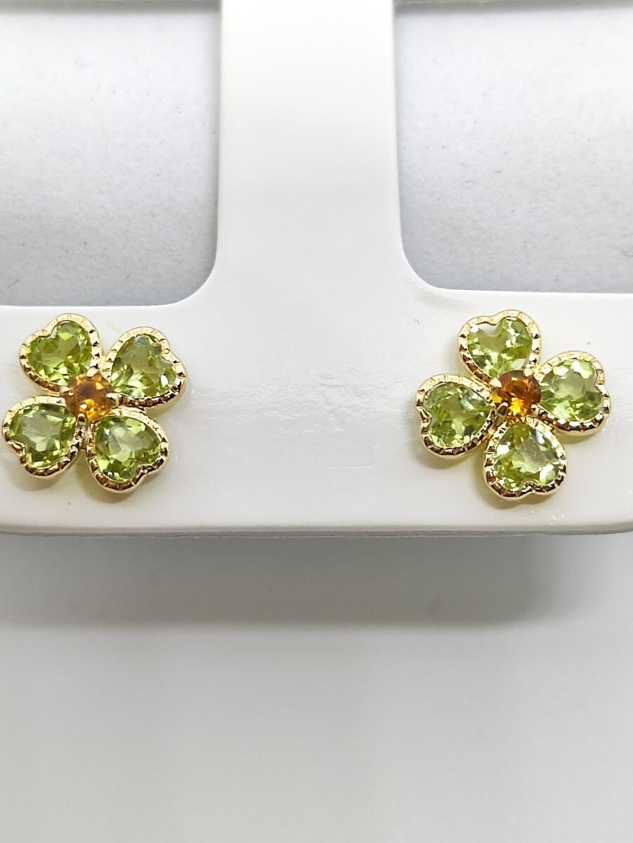 K18 ペリドット&シトリン 花モチーフ スタッド ピアスです。