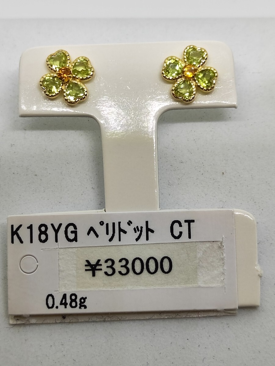 ペリドットが片方に4石、3.5mm×3.5mm。