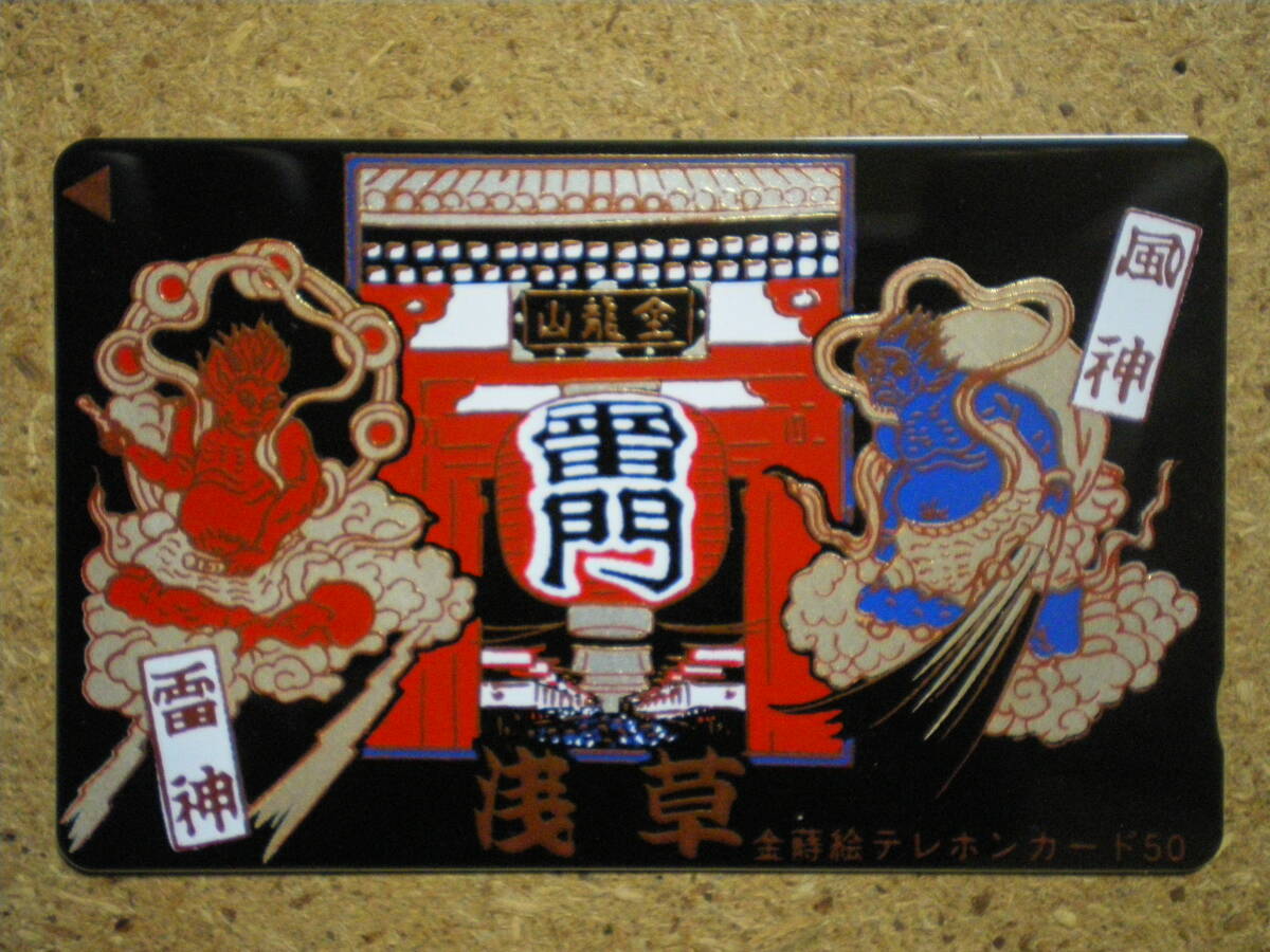 maki・蒔絵 浅草 雷門 雷神 風神 1つ切り込み 50度数 未使用 テレカ