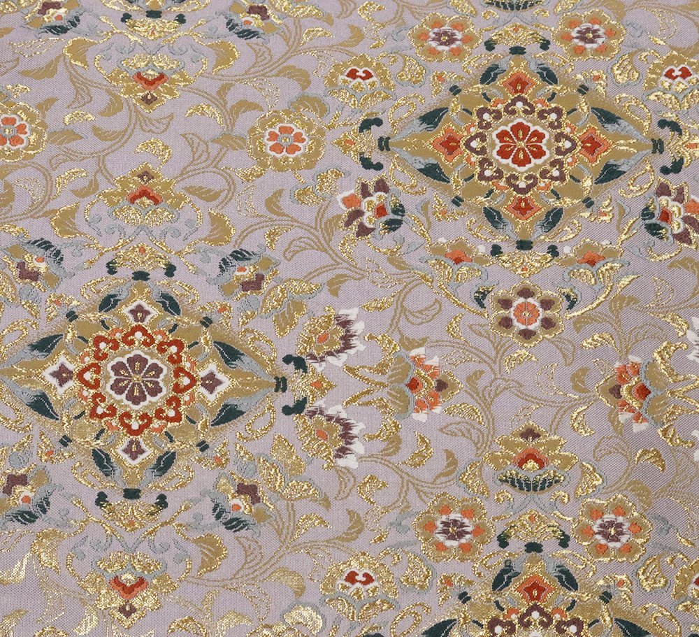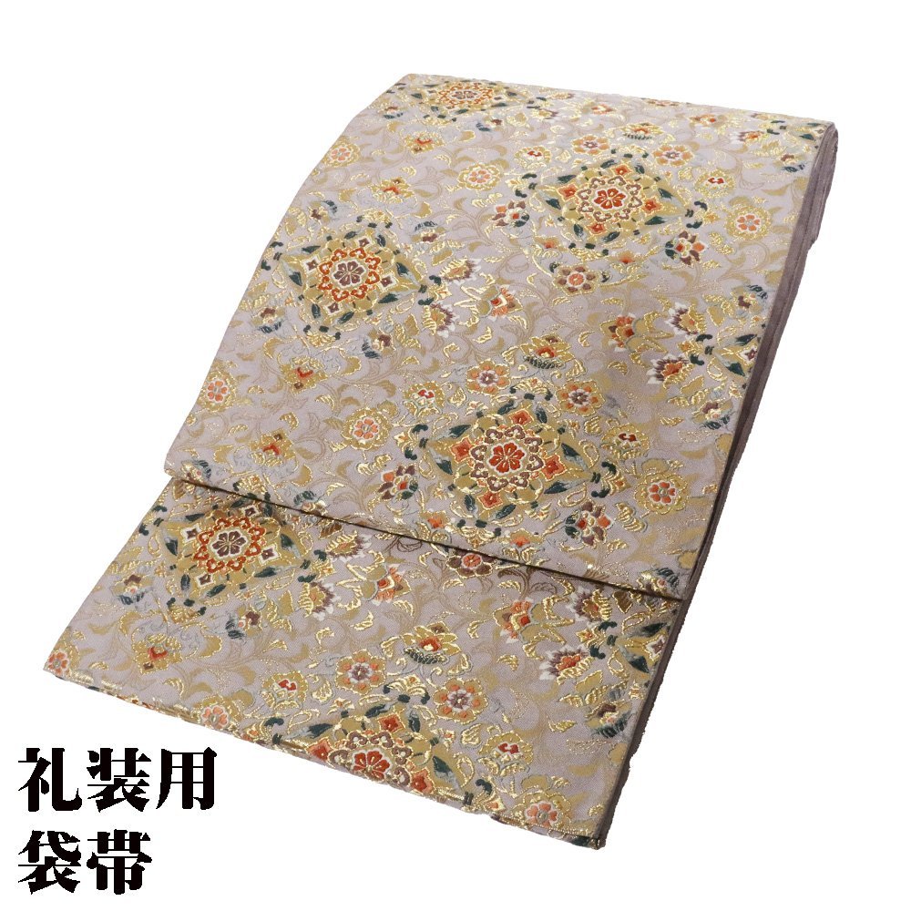 | 西陣織袋帯 薄い小豆色・金箔地 華文 仕立て上がり |