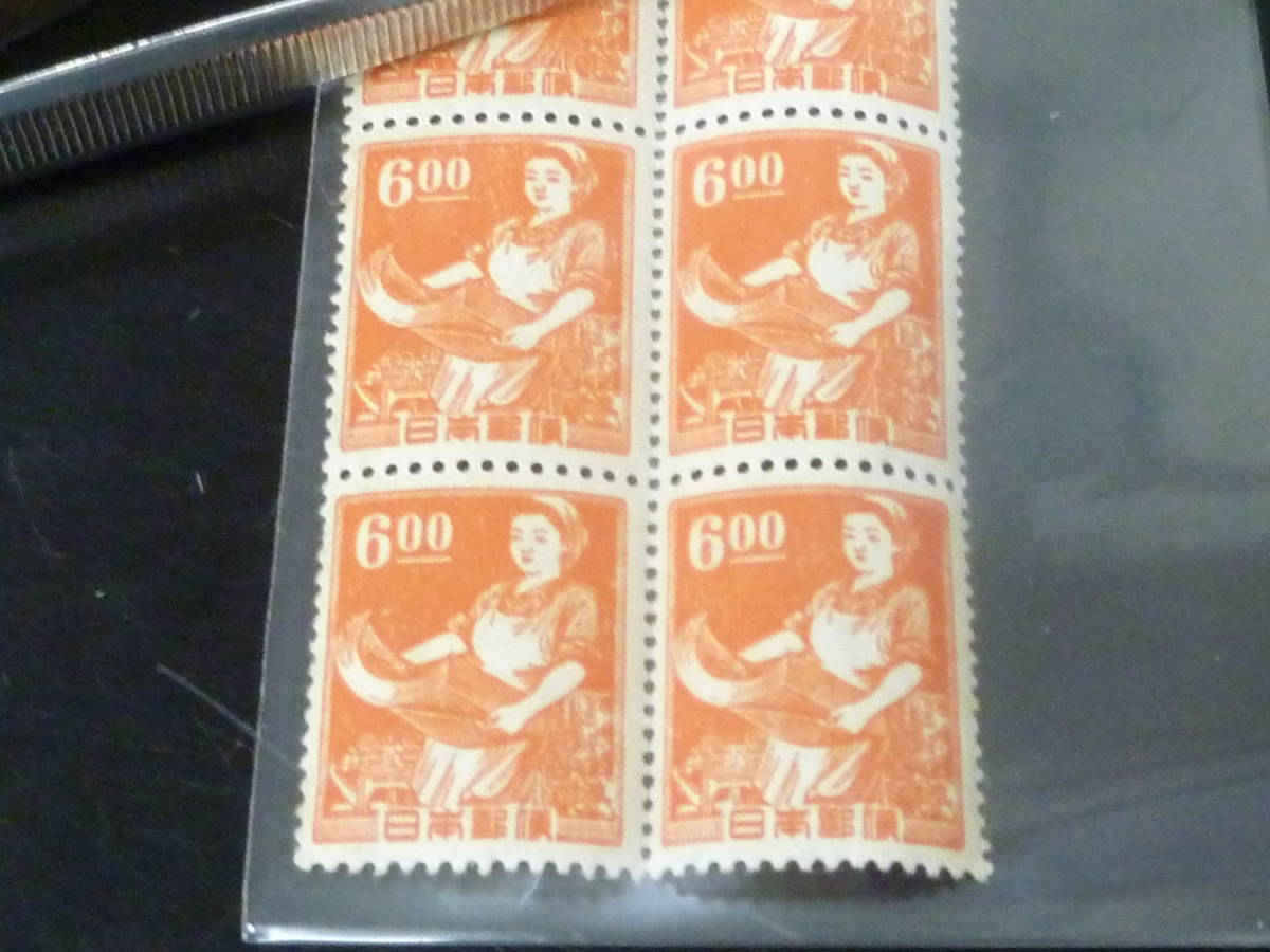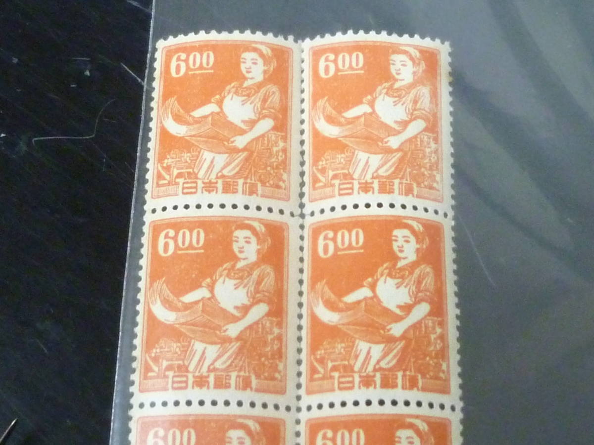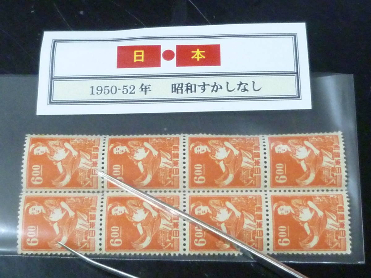 24 A №32 日本切手 1950-52年 昭和すかしなし #283 6円 8枚ブロック 未使用NH・大部分目打ち離れ有 【型価 8,000円】