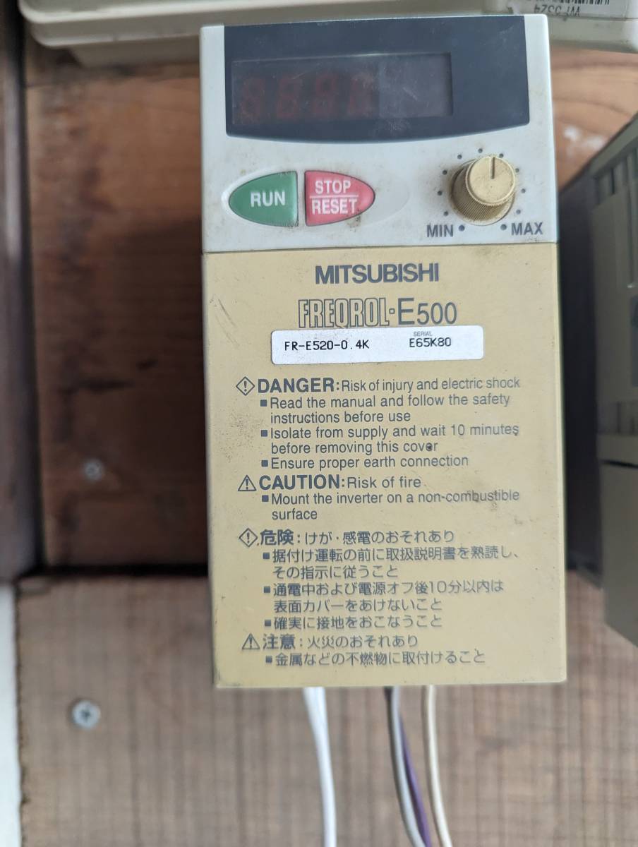 現在当方には動力の契約がありませんので回転確認は写真のインバーターで行いました。