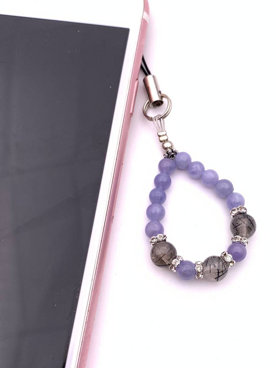 天然石タンザナイト&ブラックルチルクォーツのストラップ