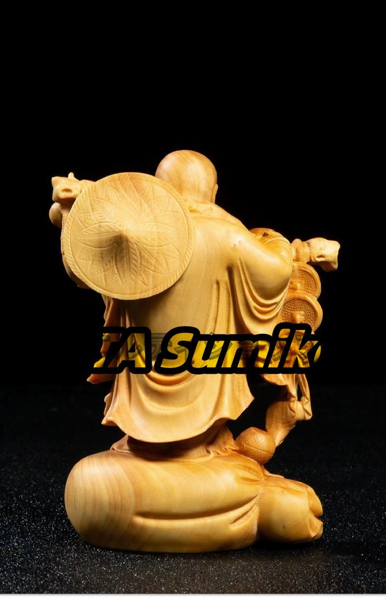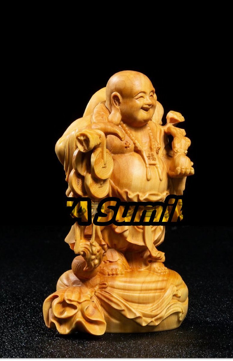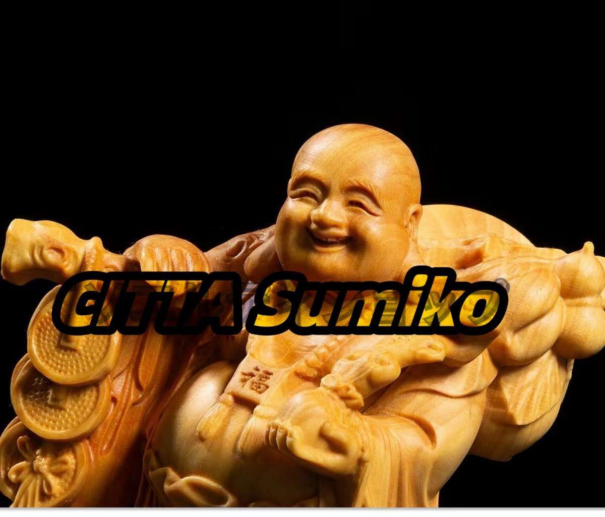 極上の木彫 布袋様 七福神 置物 精密彫刻 木彫仏像 仏教工芸品 金運 財運