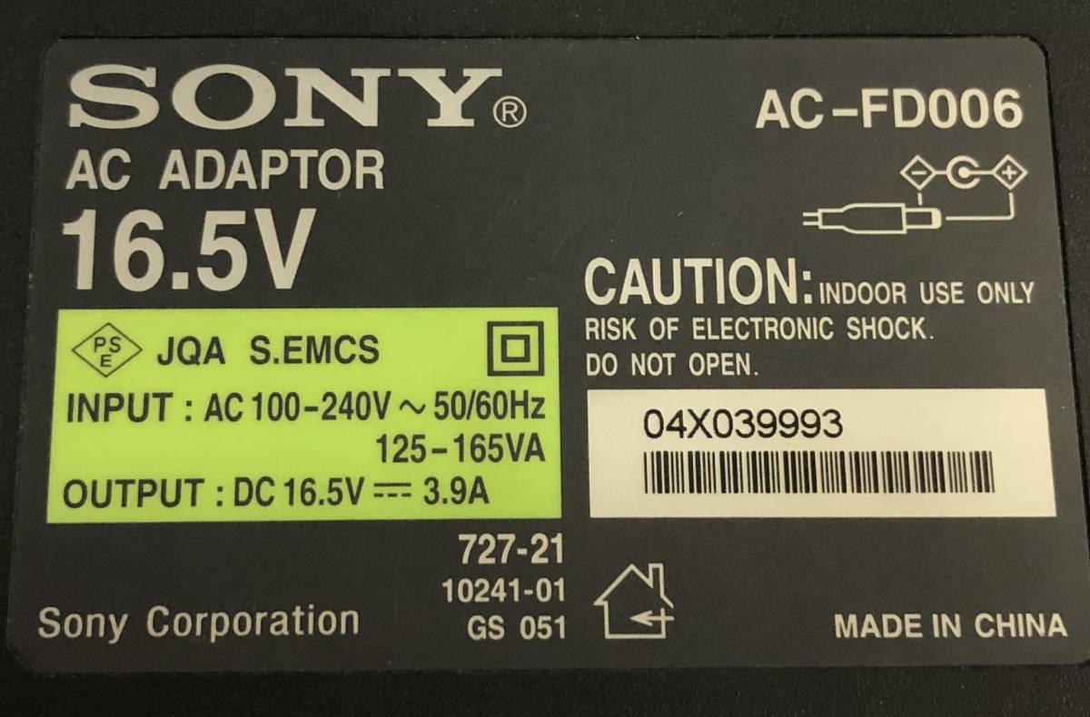 SONY ACアダプター AC-FD006 16.5V 3.9A