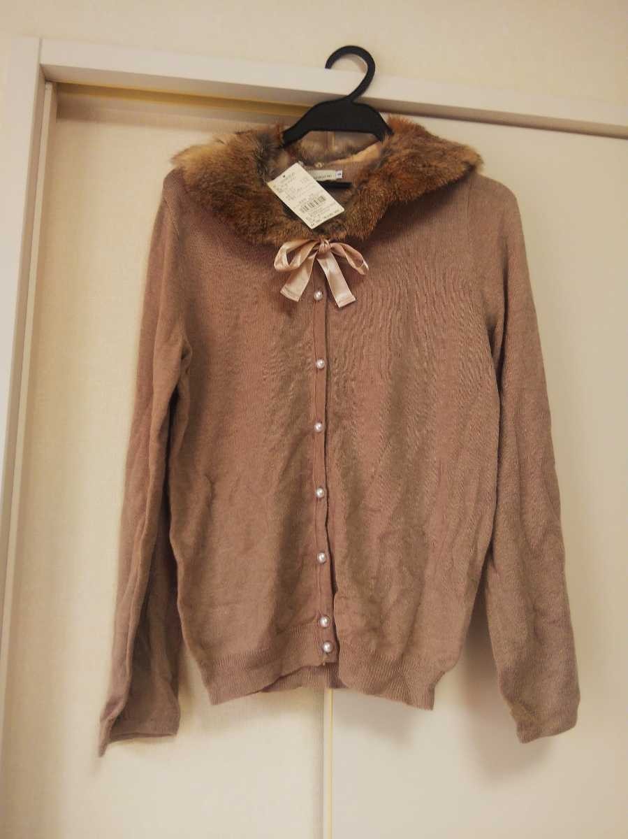 新品☆earthmusic&ecology☆ファー衿アンゴラカーディガン☆ニット☆S☆定価4998円☆アースミュージック&エコロジー☆ベージュ