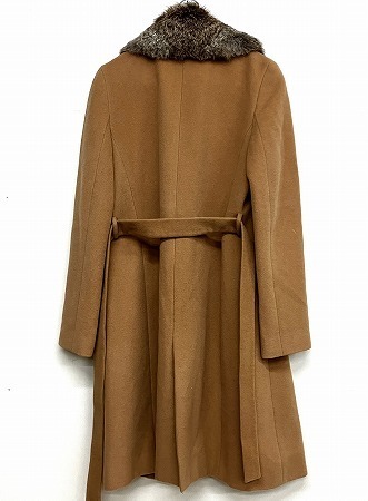 □ 【 INED イネド】 サイズ2 最高級アンゴラ混 ラビットファー ベルト付 2way コート ベージュカラー ロングコート 中古 □