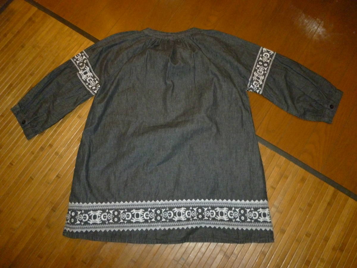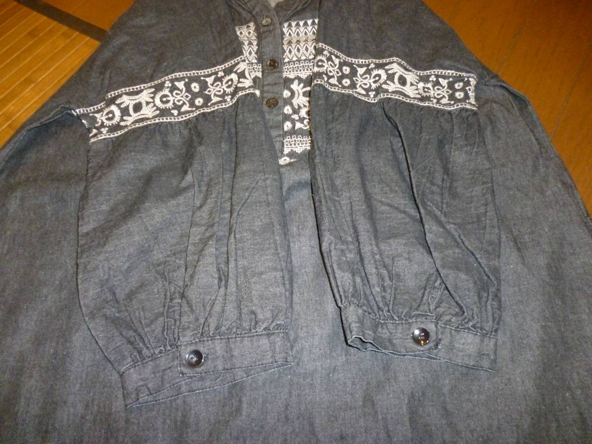 234-80♀:3S4you  インド刺繍入り 長袖 デニム ブラウス size.M~L 色.ブラック インド製 TRY
