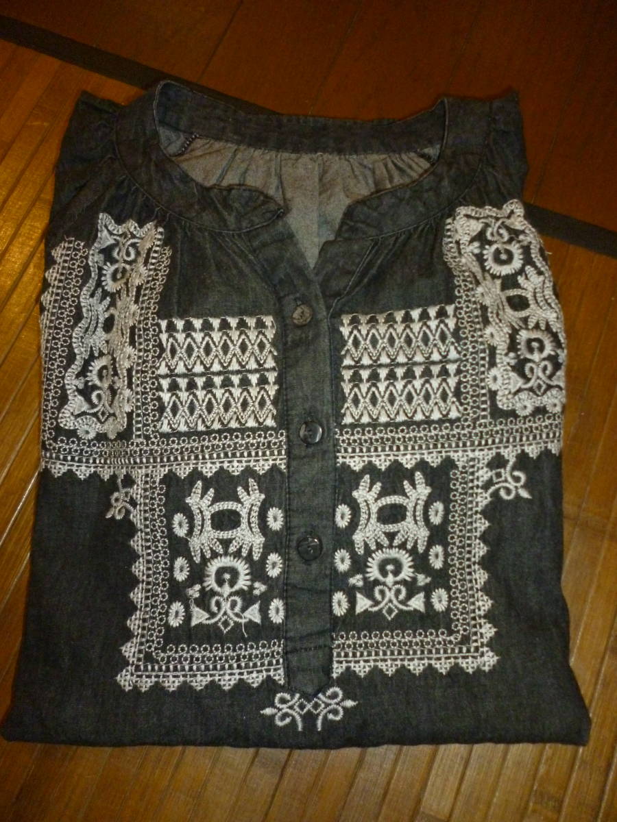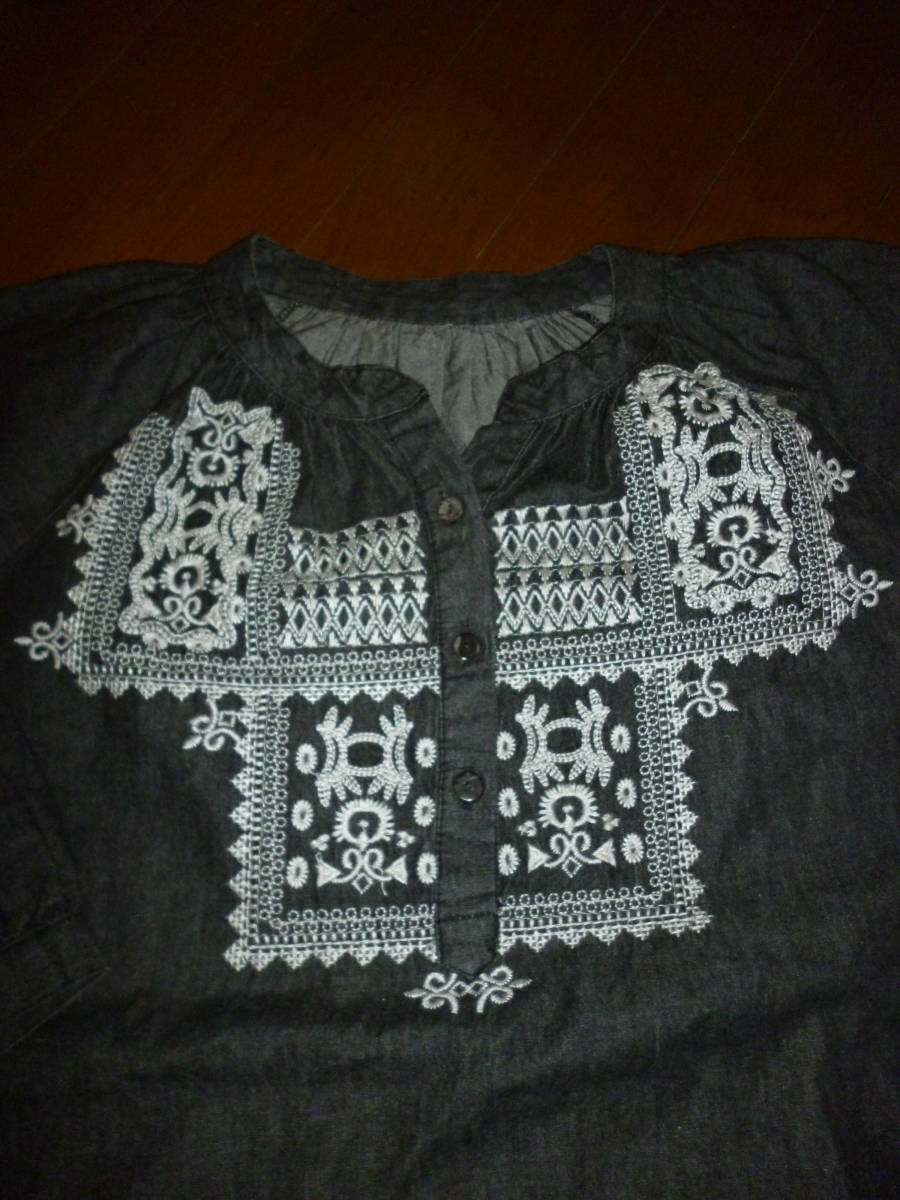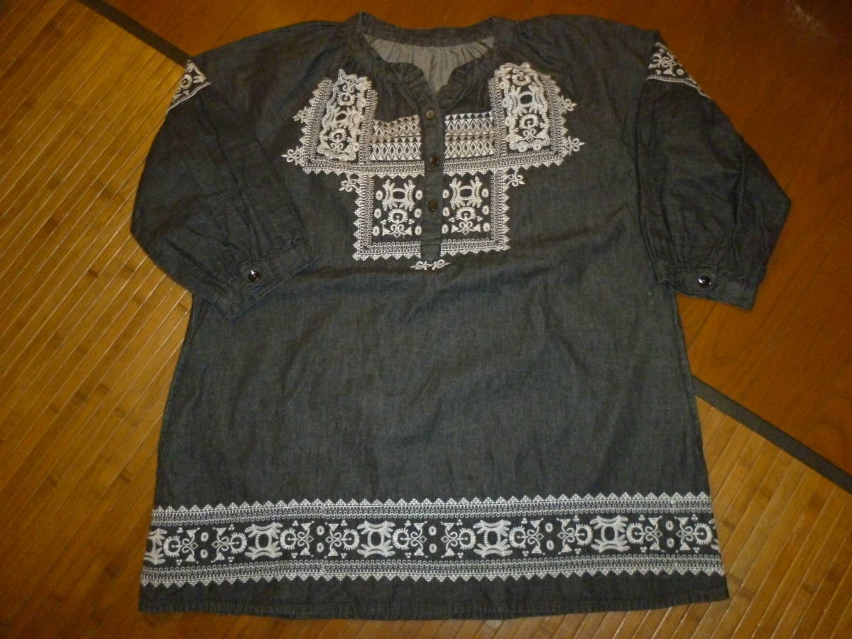 アイテム:デニム 長袖ブラウス 刺繍入り