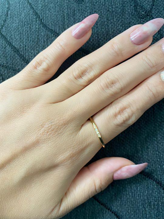 #18KGPゴールドのシンプル3粒細リング大人の指輪