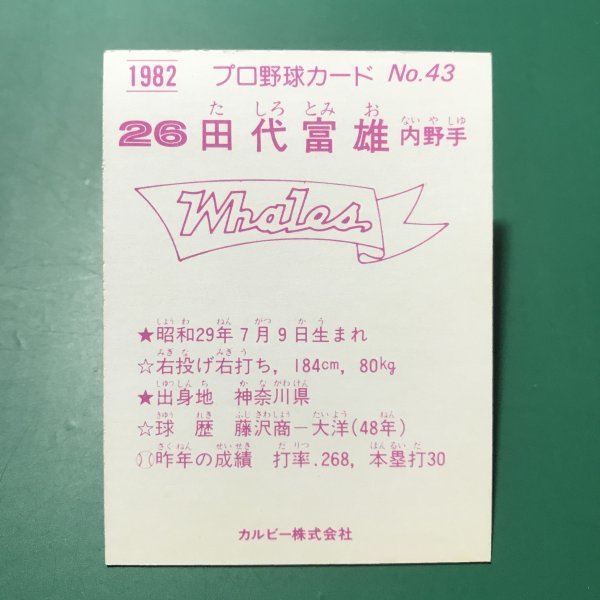 1982年 カルビー プロ野球カード 82年 43番 大洋 田代   【管C42】