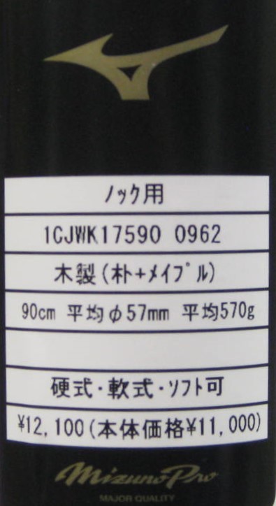 商品名 ●ミズノプロ展示会限定)木製ノックバット(朴+メイプル)1CJWK175ブラック×レッド90cm