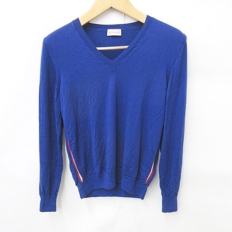 モンクレール MONCLER MAGLIONE TRICOT SCOLLO A V ニット セーター長袖 Vネック ライン 羊毛 ウール 青 ブルー M メンズ