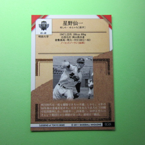 BBM2011 東京六大学野球カード 英雄伝説 #038 星野 仙一