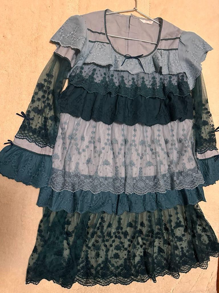 チュニックワンピース ブルー、グリーン