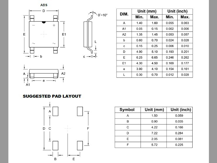 ABS6 100個 600V 1A 超小型 ブリッジダイオード
