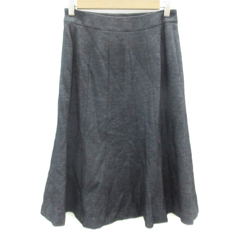 ニューヨーカー NEWYORKER フレアスカート ミモレ丈 ウール 9 ブラック 黒 ネイビー 紺 /YM16 レディース