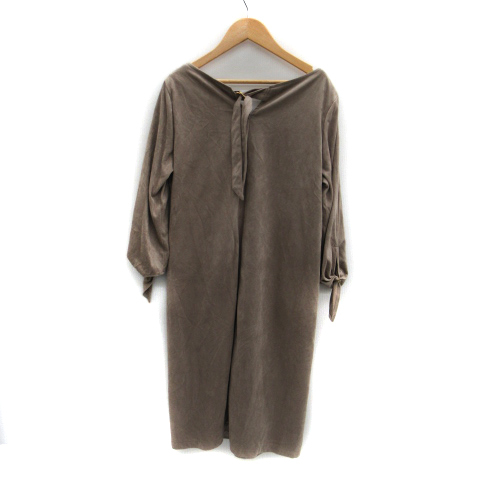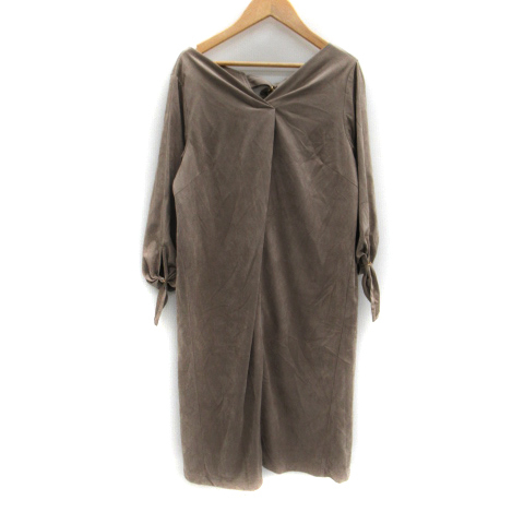 ビームスハート BEAMS HEART ワンピース ミモレ丈 長袖 Vネック スエード調 グレージュ /SM25 レディース