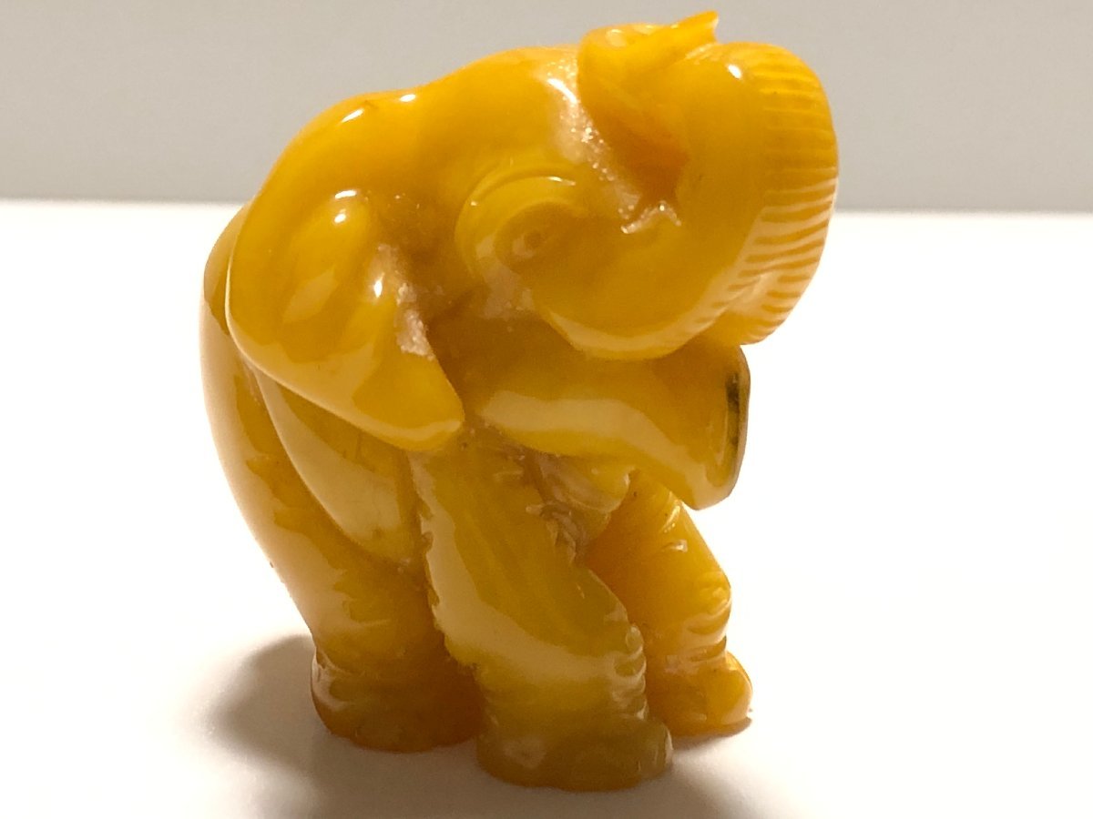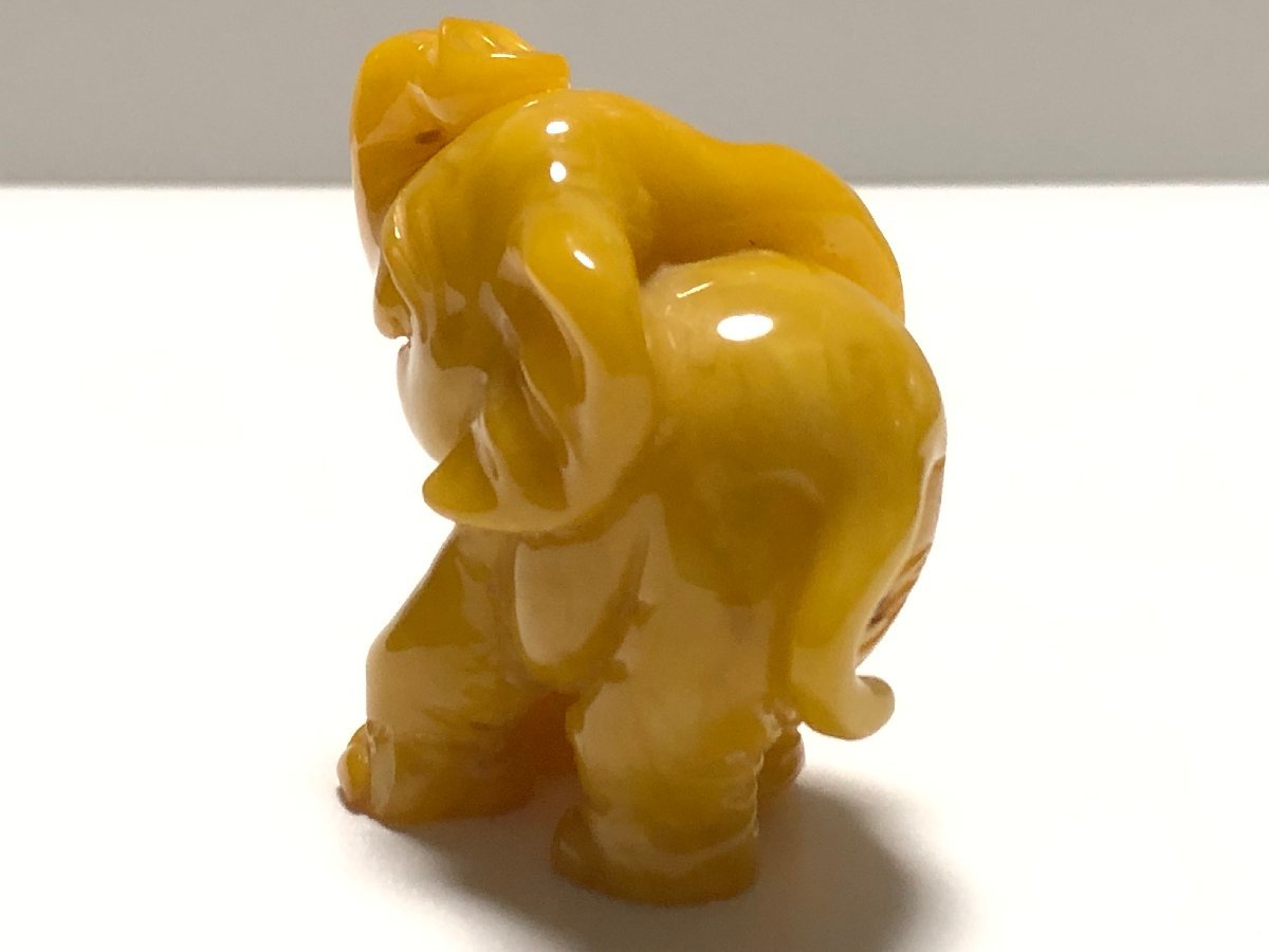 アンティークのロイヤルアンバーを使用した、象彫刻の置物です。美品です。