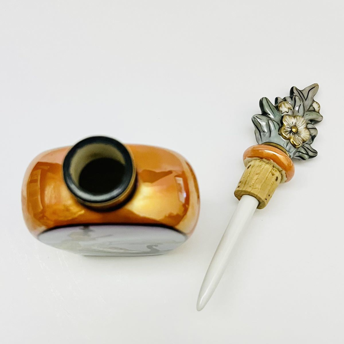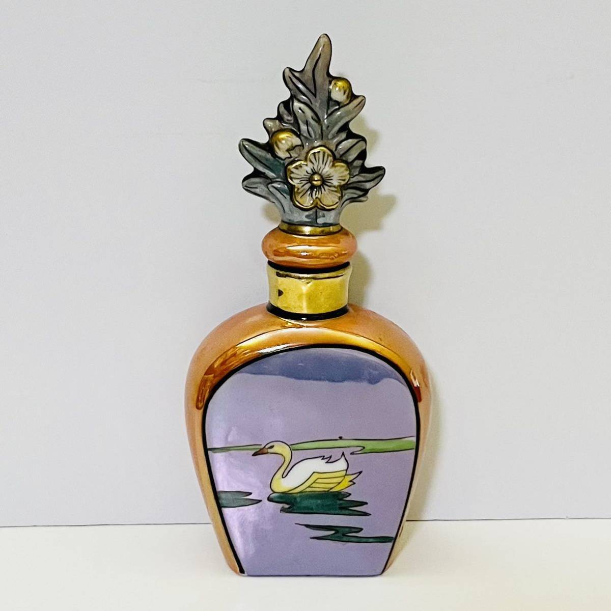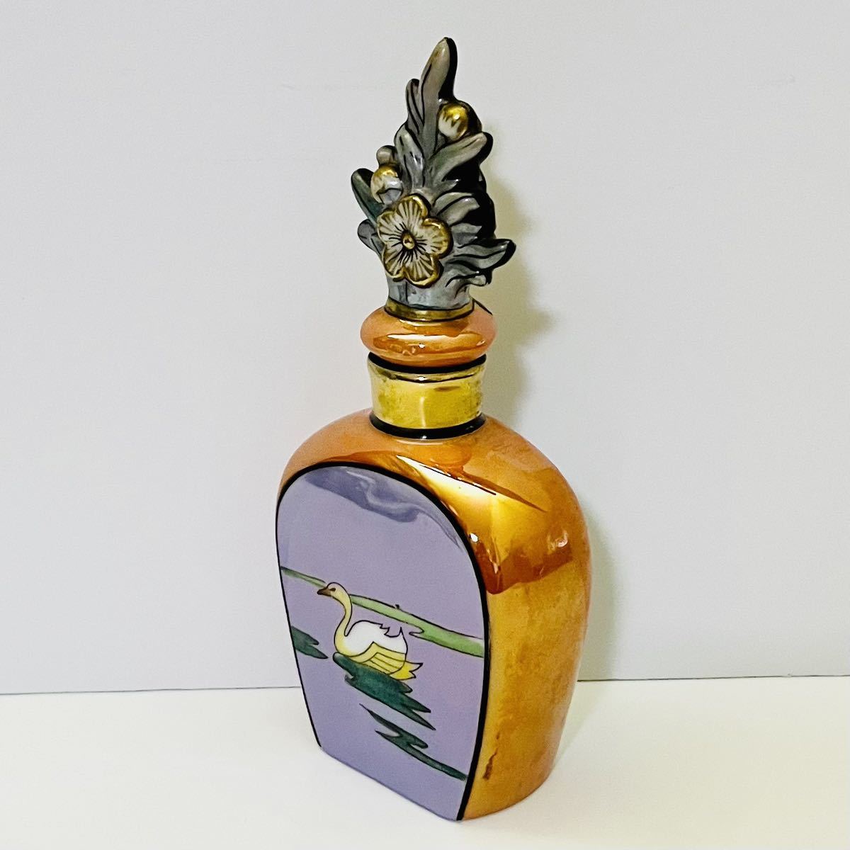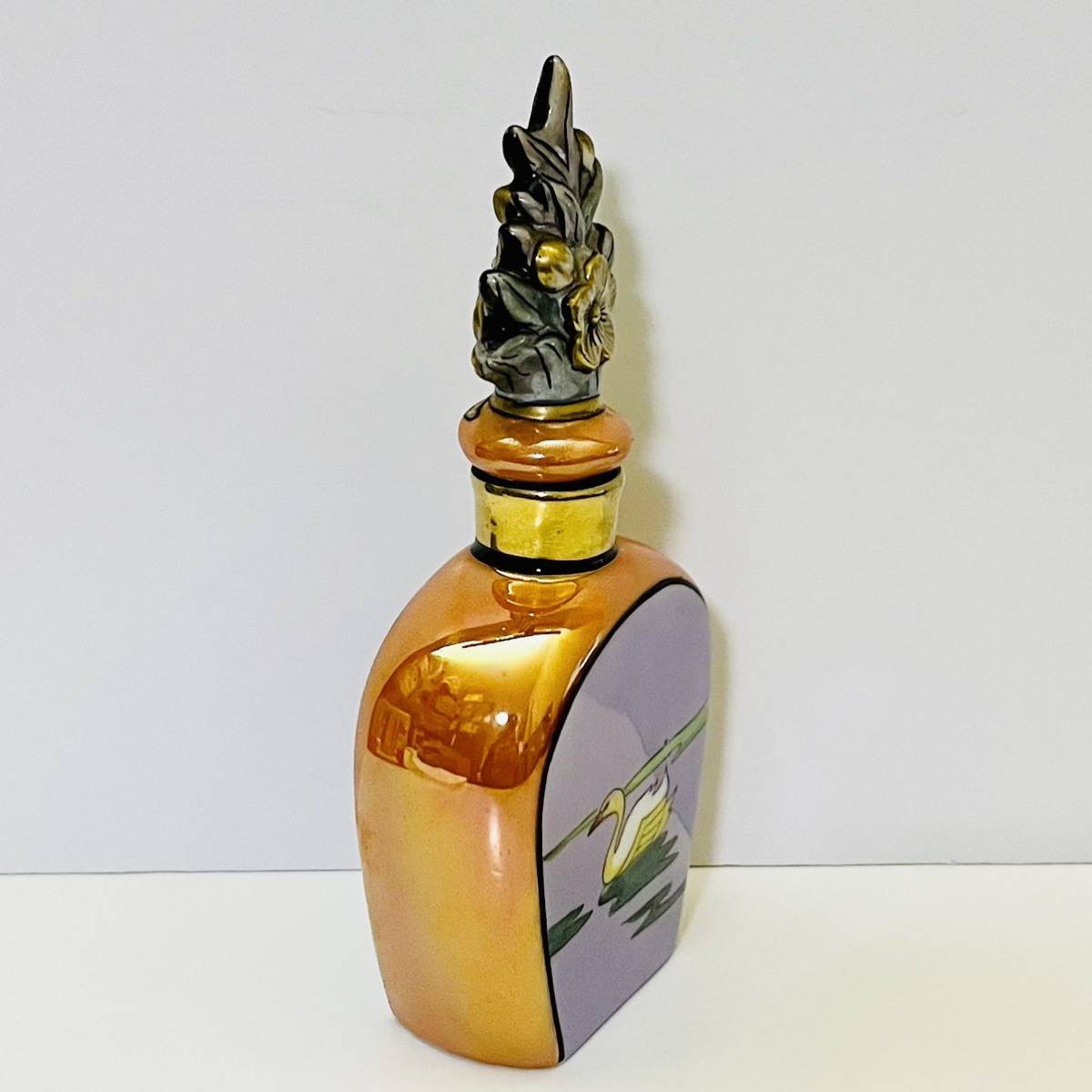 オールドノリタケのデコレディの香水瓶です。 香水瓶は、ラスター彩と金彩が美しく施されて、ゴンドラに乗っているレコレディが描かれています。 バックスタンプのM-JAPAN印から推定すると1918〜1941年頃にかけて、主にアメリカ向けに輸出品として製造されたものです。 アメリカ本国でも熱狂的なコレクターズアイテムとして愛されているため、この商品は非常に希少だと言えます。 【サイズ】 横幅6cm、奥行3cm、高さ14cm 【状態】 約100年前のアンティーク・ヴィンテージ品になりますが、目立った傷、欠け、割れ、修復跡はなく、とても綺麗な状態です。 わずかな擦れ、傷等は記載しない場合があります。 写真をじっくりご確認いただき、気になる点がございましたら、どうぞお気軽にお問い合わせください。 |