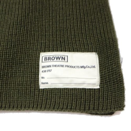 BROWN THEATRE PRODUCTS ブラウンシアタープロダクツ STICKER LABEL HOOD MUFFLER フード付きニットマフラー カーキ