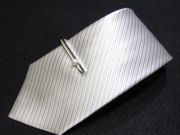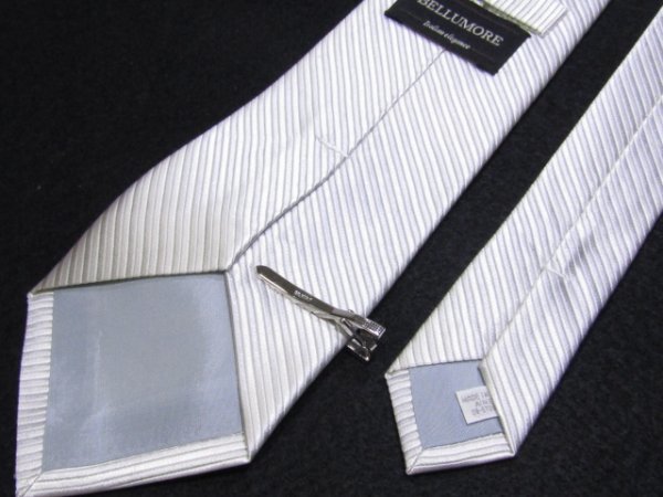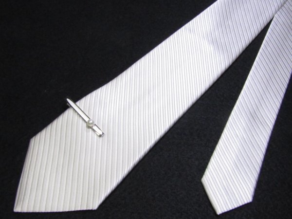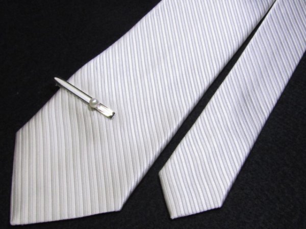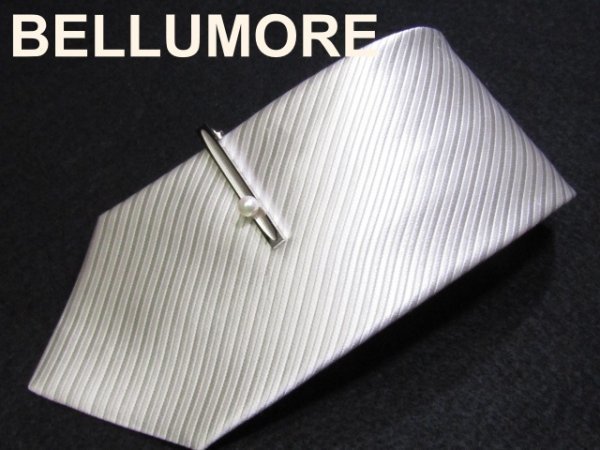 【フォーマル】A 800 ベルモーレ ネクタイ BELLUMORE クリームホワイト系 ストライプジャガード ピンク系本真珠ネクタイピンおまけ付き