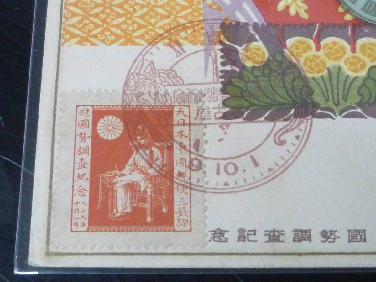 24 P 絵葉書№7 日本 1920年 第1回国勢調査 3銭貼 記念印付